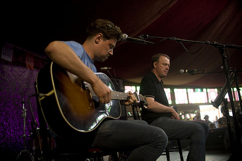 Edwyn Collins in concert is a real uplifting experience. His life-threatening illnesses have wreaked havoc with his systems and it takes all his effort to walk the short distance from backstage to take his place on a stool where the words to all the songs he is going to sing are in a book in front of him. Even though he forgets the name of his great friend who is accompanying him on acoustic guitar – James Walbourne – he makes light of it and launches into a 45 minute set comprising solo material mixed in with some Orange Juice classics, some of which worked a treat as acoustic numbers while others were a bit more shambolic….although as a veteran of Orange Juice gigs it was great to see that the great man after all these years still doesn’t take things so seriously that every note sung and every chord strummed has to be perfect.