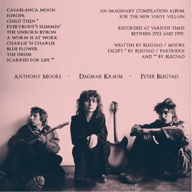 Following the release of “Everybody’s Slimmin’”, Slapp Happy belatedly made their live debut with a one-off show at the London Institute of Contemporary Arts, but after that, nothing was heard from the trio until 1991, when Blegvad and Moore were commisioned to write an opera, Camera (as in room, not imaging device) for German TV, and brought in Krause to play the lead role. It came out on CD a few years later and it’s pretty cool but I’m not including anything from it here as it’s not really a group release, nor very amenable to having songs taken out of context.