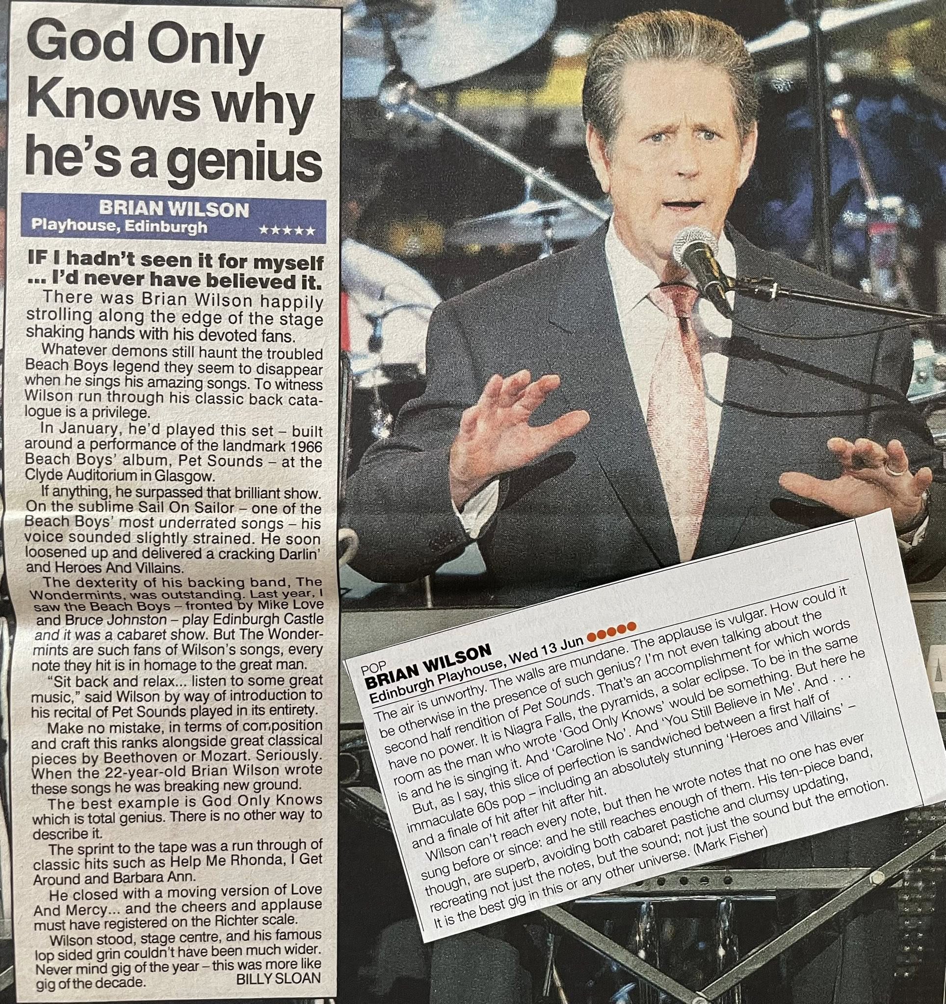 A year or two later I caught Brian backed by the same band in a tent at T in the Park, tearing through all the classics. It was absolutely joyous, and he seemed to be having a lot of fun.