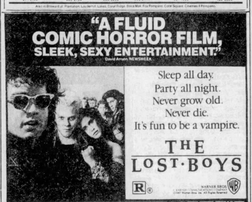 (Lost Boys film advert from The Miami Herald Aug 5, 1987)