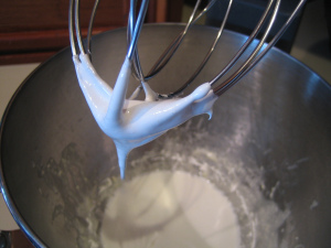 3. Using electric mixer, beat egg whites, sugar and a pinch of salt until medium peaks form. Add egg white mixture to almond mixture and fold to incorporate.