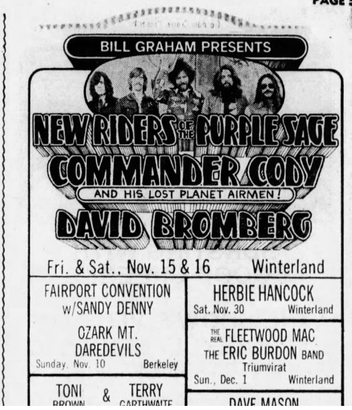 In the early autumn of the same year, the band were back on tour. Listings found the line up Welch, McVie, McVie and Fleetwood listing them as ‘The Real Fleetwood Mac’