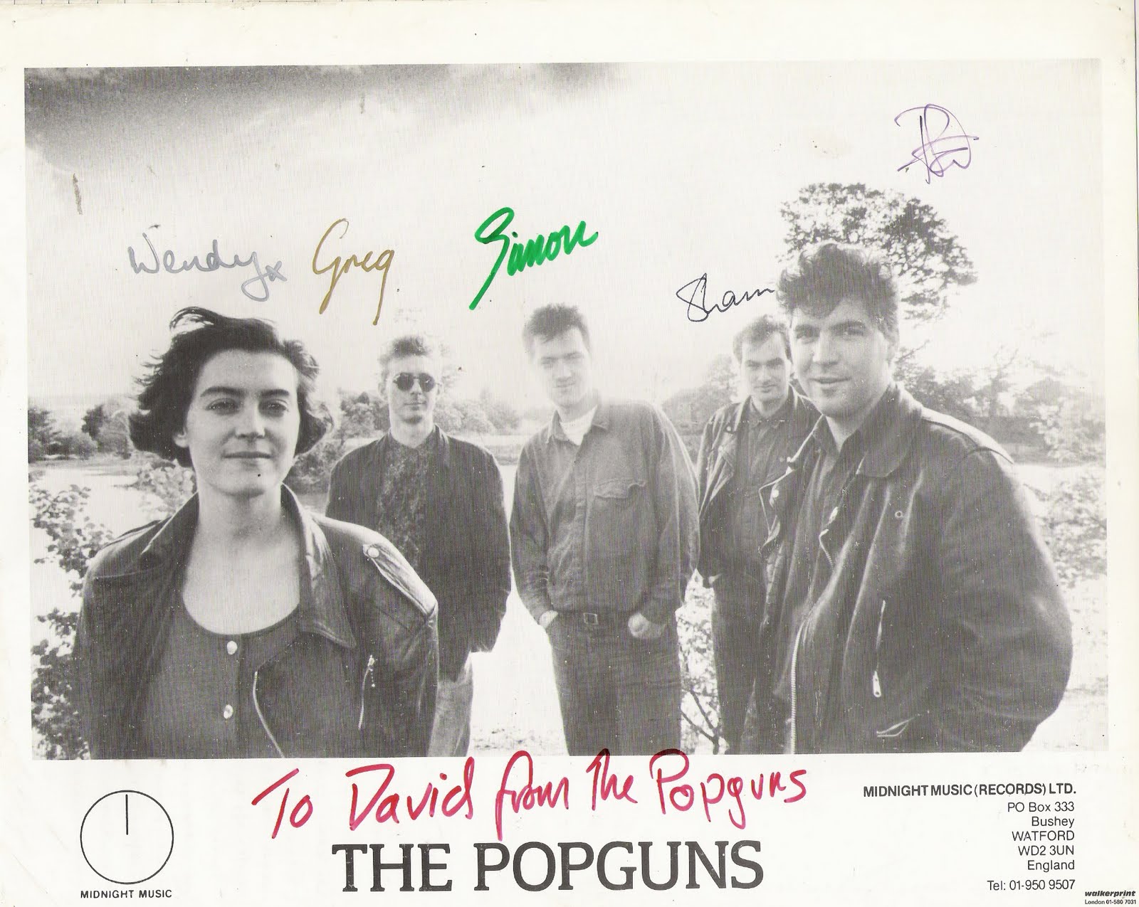 I have to be rather careful here, because strong parts of my love for The Popguns were always based on my never-ending love for Wendy Morgan, the singer. The problem is that Wendy is no longer Wendy Morgan, she is Wendy Pickles for quite some time now, wife of Simon Pickles, guitarist, pictured above in the middle. And Simon, lucky him, has visited The Vinyl Villain in the past and left comments (this was years ago, yes, but still I’m quite jealous of him (not so jealous like I am of that midget of The Jesus & Mary Chain for having stolen the one and only Hope Sandoval from me, but jealous enough, believe me)), so I’d better watch out and don’t praise Wendy too much!