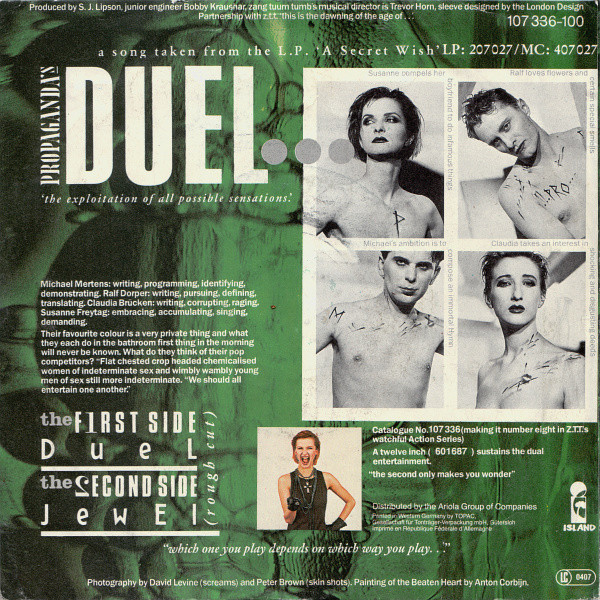 Propaganda was, in my mind, the greatest achievement of ZTT. Dr. Mabuse is a single that, more than any other, exemplifies the label’s mission statement. It was a crystal production, had literary influence and strove to be post modern pop. A Secret Wish would build on this in an explosive way. Nothing else ZTT released ever had the same impact on me as this single and debut album.