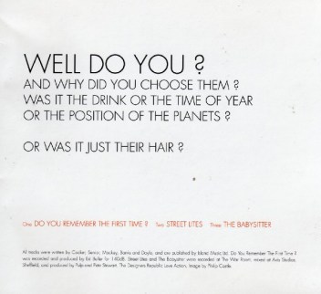 The band had taken a long time to get any sort of commercial success – the debut single dated from 1983 and it had been fully ten years before they had anything break into the Top 50 of a singles or albums chart. Things changed a bit with Lipgloss (#50), Do You Remember The First Time (#33) and the Babies EP (#19) along with His’n’Hers, an album which entered the charts at #9 in the first week after its release in April 1994,but in what would prove to be a 55-week stay in the charts would enjoy just one more week inside the Top 30.