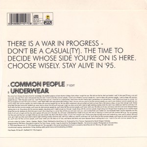 Common People, released on 22 May 1995 was one of the things that took the band into a new stratosphere. It came in at #2, denied the top spot by Robson & Jerome‘s cover of Unchained Melody – another in a long line of examples of TV actors enjoying huge success when turning to music.