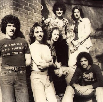 (The New Steppenwolf 1977 L – R : Goldy McJohn, Kent Henry, Nick St Nicholas, Jamie James, Tony DeSanti, Tom Pagan)