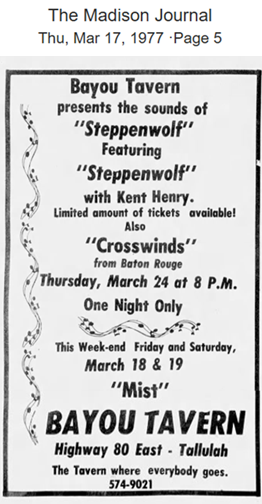 Before Max Allen Collins wrote Road To Perdition he was a member of a bar band called Cruisin in the Iowa area, playing the same venues at the same time to that of the various Steppenwolfs. In an email to me he was able to shed some light on the kind of venue The New Steppenwolf had found themselves playing. He remembers The Moody Blue in Iowa.