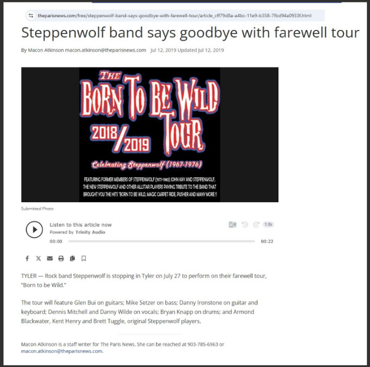 The singer is a chap called Danny Wilde who was apparently a survivor of the 1980s LA Rock scene. In 2019 Revisit Steppenwolf (which at times found itself just billed as Steppenwolf) announced a final tour. One pandemic and four years later and Danny Wilde is advertising himself as the “Former frontman for multi platinum selling band Steppenwolf”.